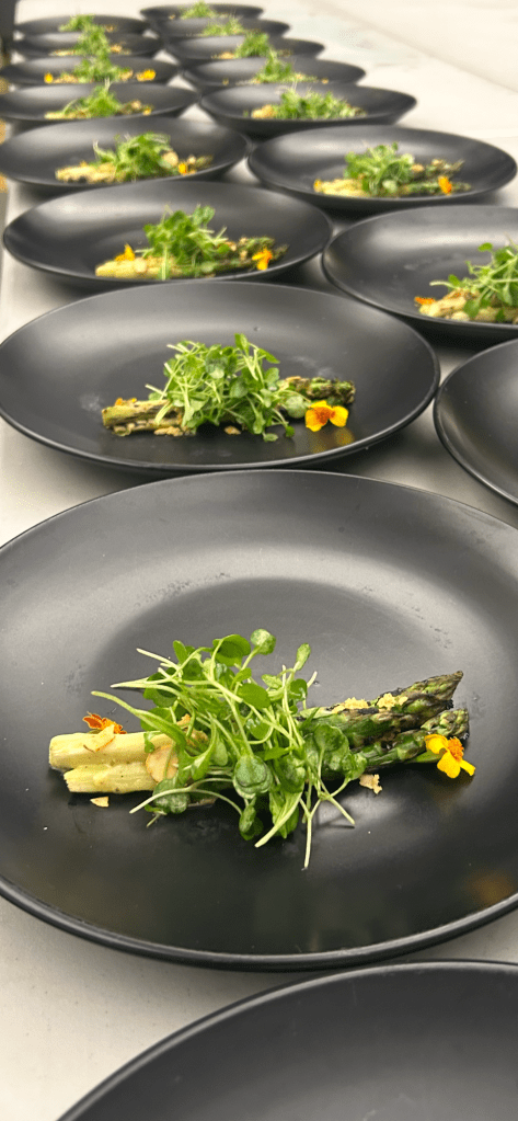 Presented on sleek black plates, the dish visually mirrored the bold-yet-delicate nature of spring itself, with wild, organic plating that felt almost as if it had been plucked straight from a garden.