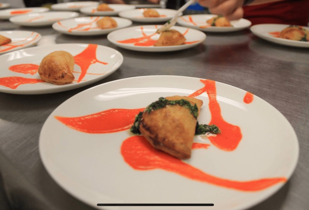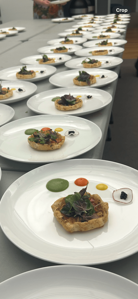 These two dishes embodied contrasting yet complementary plating styles—one bold and expressive, the other delicate and refined. The Spanish Shrimp featured dynamic splashes of color, while the Spring Vegetable Galette showcased a more structured, garden-like elegance.