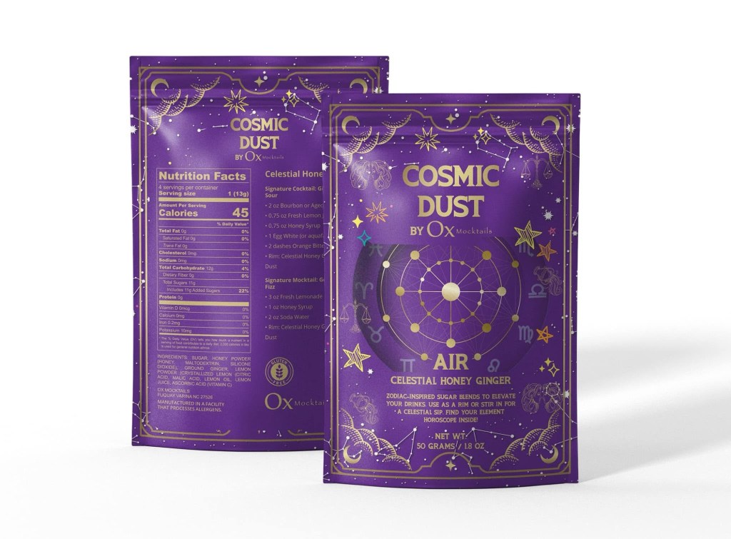Fast forward to now, and Cosmic Dust is officially real. We created a collection of elemental, zodiac-inspired cocktail dusts that bring magic to every glass. Each flavor was crafted with intention, using a chef’s approach to balance and boldness, paired with a playful storytelling vibe that keeps things fun.